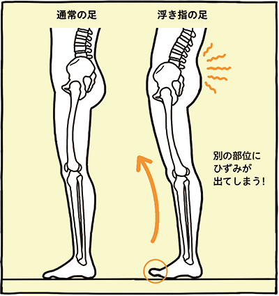 靴の選び方一つで、足の構造や歩行に大きな変化が起こり、浮き指の発生につながります。